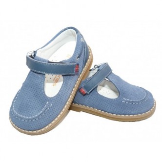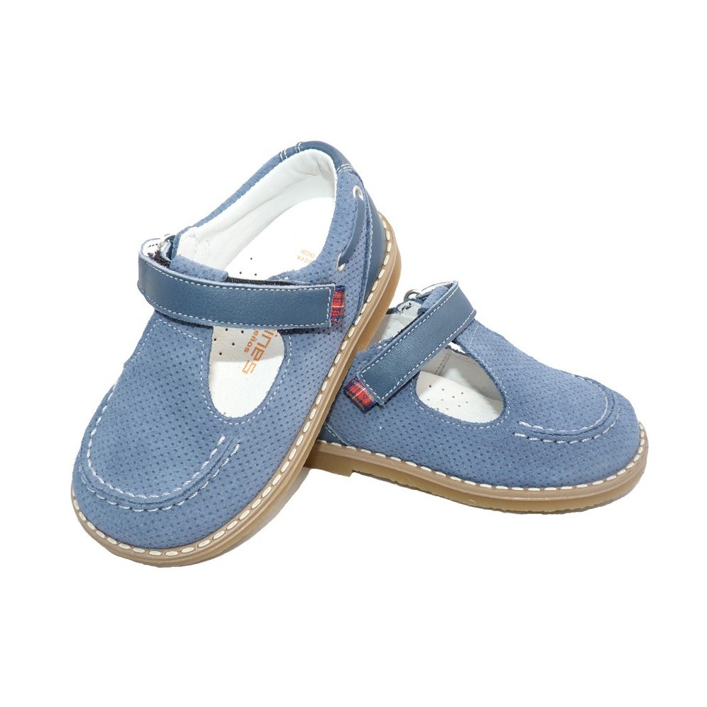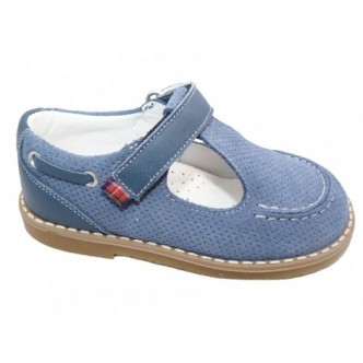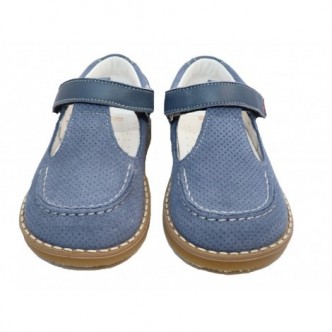 Pepitos piel ante en color Dijon Simba Iris Azul. Cierre velcro. ANDANINES