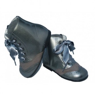 Botas estilo pascuala en piel charol y ante color gris.Cierre lazo de raso al tono y cremallera lateral para mayor comodidad para calzar.Un modelo perfecto para cualquier momento y ocasión.Comoda y flexible.Suela goma antideslizante.Fabricado en España.Andanines