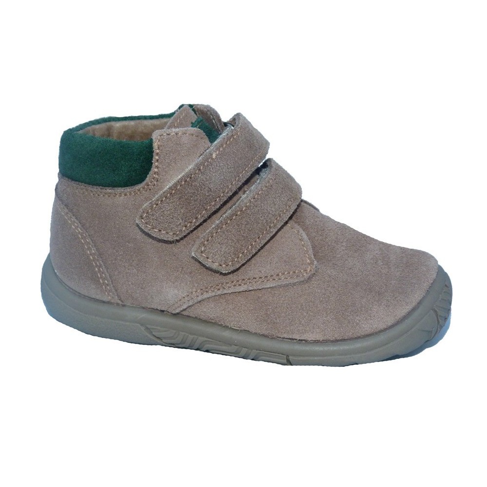 Botas piel serraje en color Taupe combinado con Verde.Cierre doble velcro para mayor sujeción a la hora de calzar.Comoda y muy flexible. Suela de goma antideslizante.Fabricado en España. QUECOS
