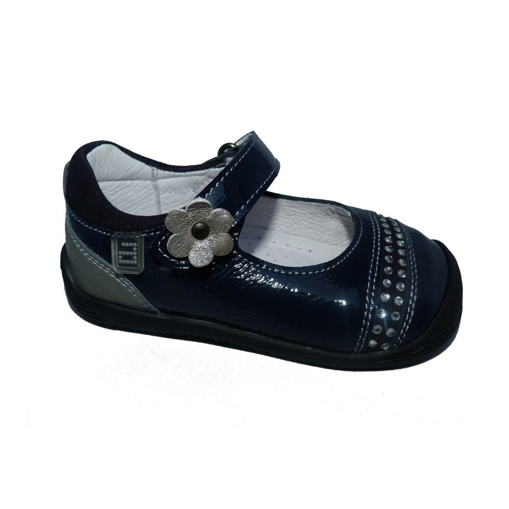 Mercedita Piel Charol color Navy Marino.Detalle flor en el cierre y brillantes en la parte delantera.Cierre velcro. ANDANINES.