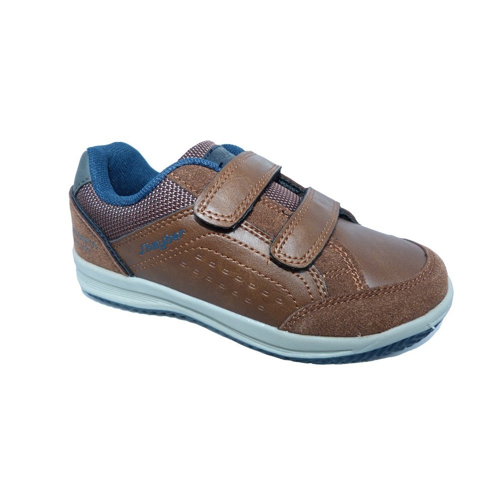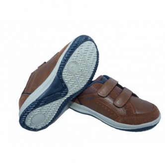 Deportivas en color Marrón con detalles en azul.Cierre de velcro para mayor facilidad a la hora de calzar.Puntera con un pequeño refuerzo.Un modelo casual,facil de combinar perfectas para el dia a dia. Muy comodas y ligeras.Suela de goma.