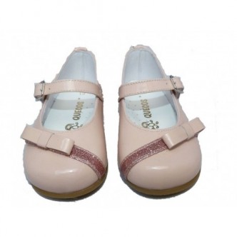 Mercedita niña piel charol disponible en color charol seda rosa.Con detalle lazo delantero al tono y detalle purpurina en el lateral.Clásico y elegante zapato. Práctico cierre de hebilla.