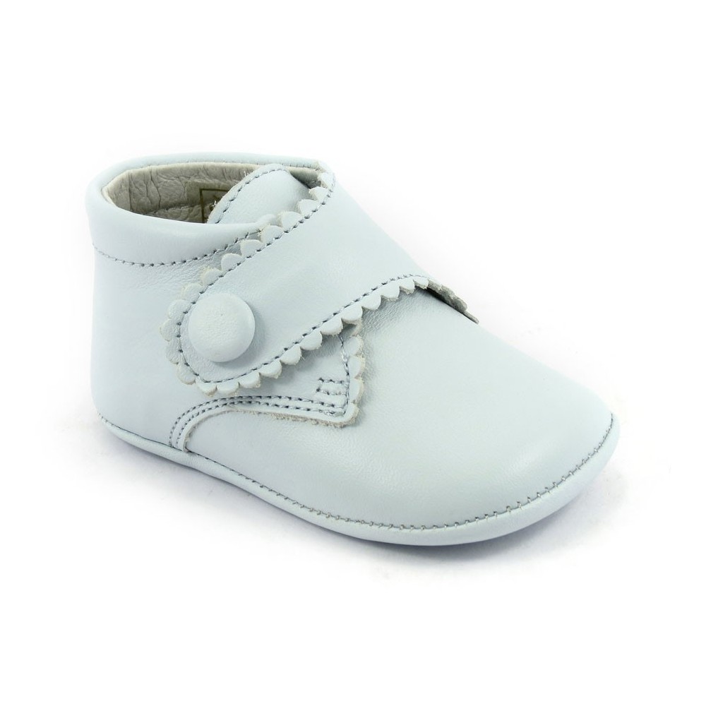 Bota de bebe en piel color celeste de excelente calidad. Ideal para vestir a los más pequeños de la casa. Muy suaves y flexibles. El cierre con velcro permite adaptarse perfectamente al pie