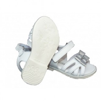 Sandalia niña piel color blanco,detalle lazos plateados. QUECOS