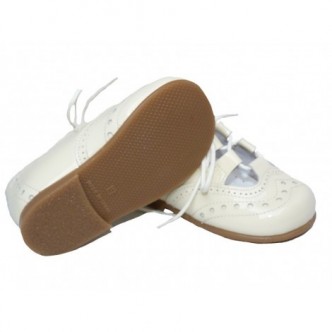 Zapatos dibujo ingles de piel charol en color Beig.Cierre cordón al tono.Clasico y elegante ideal para cualquier momento y ocasión.Perfecto para los primeros pasos.Suela de goma antideslizante. Fabricado en España.