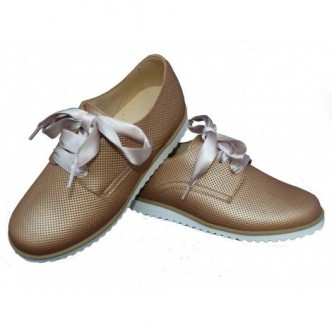 Zapato piel disponible en color Beige o color Cobre(tostado). Cierre lazo de raso al tono. ANDANINES